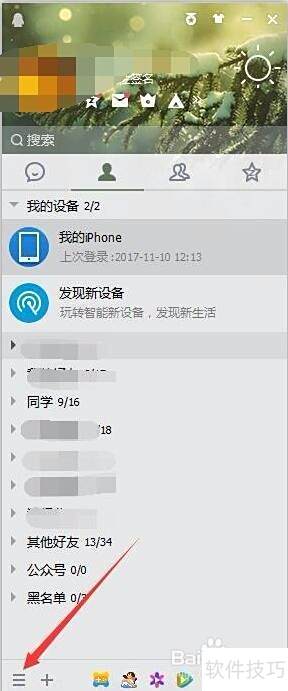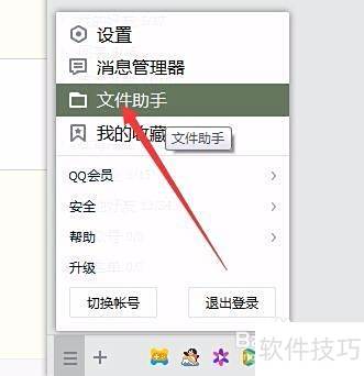 4、 登录电脑QQ后,点击左下角三标志,可从主菜单中找到文件助手。