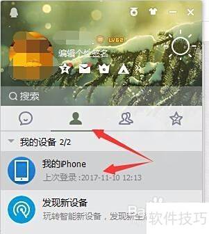 2、 在电脑QQ中,点击联系人选择我的设备。
