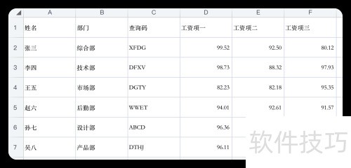 1、 整理数据表,规范表格格式,每列对应工资项目,每行记录个人工资明细。