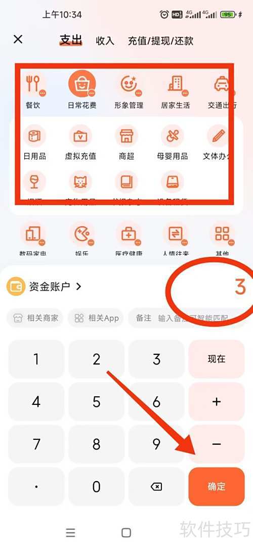 3、 第三步:在弹出界面输入消费分类及金额后,点击确认完成操作。