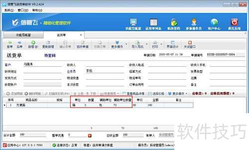 送货单软件支持多种计量单位,并允许添加辅助单位。辅助单位是指同一商品在不同销售场景下所使用的多个计量单位,例如包和箱。这些单位之间存在固定的换算关系,无论输入哪一个单位,系统都能根据设定的比例自动进行换算,方便用户在不同计量方式下准确记录和管理商品信息,提高操作灵活性与工作效率。