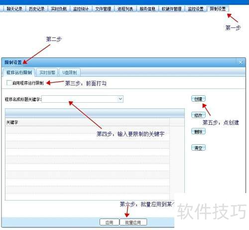 6、 在限制设置中输入网址或程序关键字,即可屏蔽相关程序和网址的运行。