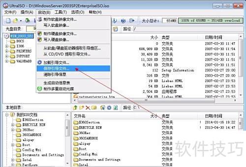 2、 使用UltraISO打开系统镜像,点击启动菜单,选择保存引导文件功能,将*.bif格式的引导文件提取并保存至本地。
