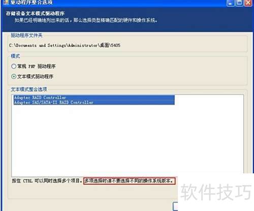 10、 在整合驱动程序时,选择文本模式,勾选下方所有驱动,注意不要选不同系统版本的驱动。