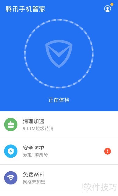 11、 这种病毒很难被主动发现,但我们可以通过定期杀毒和检测来及时发现。打开腾讯手机管家,进入安全防护中的病毒查杀功能,就能有效查杀病毒。