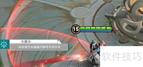 9、 站在敌方水晶前不动,等下一波兵线到来即可卡住敌方兵线。