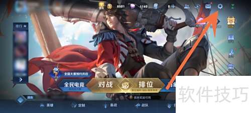 1、 进入王者荣耀,点击右上角设置选项。