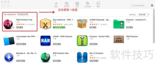 1、 首先打开App Store,搜索栏中输入rar extractor,随后会弹出相关窗口。