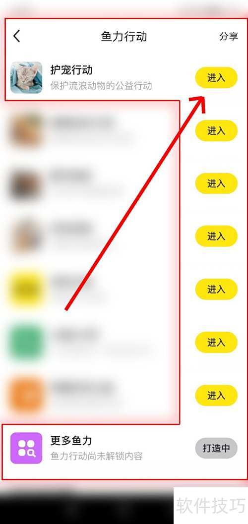 3、 在鱼力行动页面,选择心仪项目后点击右侧进入按钮即可参与。