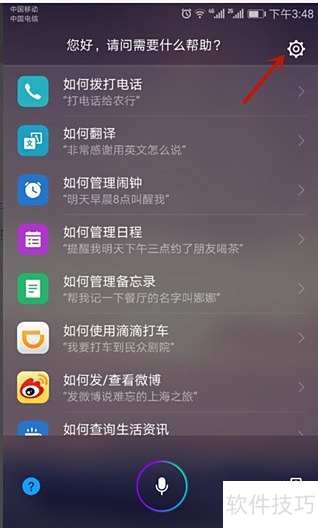 4、 进入语音助手后,点击右上角的齿轮按钮进行设置。
