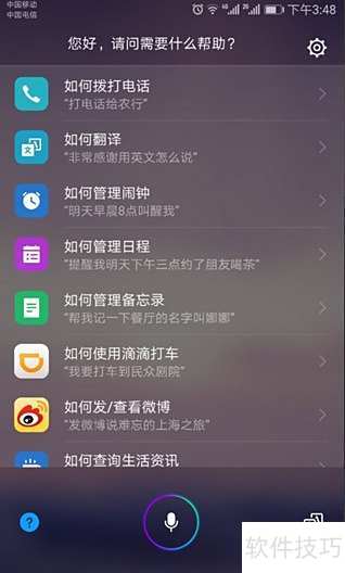 2、 打开华为手机语音助手,以P20为例操作如下:长按手机屏幕下方中间的圆形按钮,或在桌面上找到智慧语音应用图标点击进入。