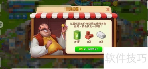 3、 第三种方式是到小镇市场用绿钞在特惠时段购买建材。