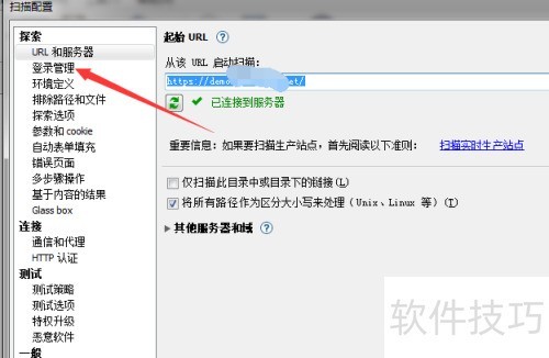 3、 进入扫描配置界面后,选择左侧的登录管理选项。