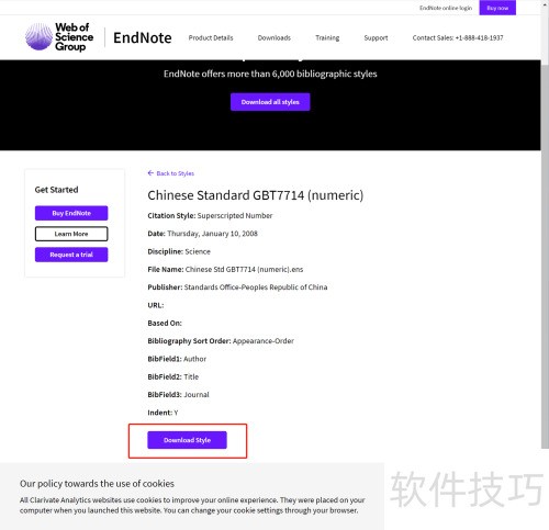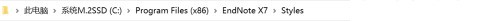 4、 第二种解决方法:前往Endnote官网下载适用于中国的GB/T 7714(numeric)格式样式文件。进入Endnote的安装目录,定位到其中的Style文件夹,将下载完成的样式文件复制并粘贴至该文件夹内,完成添加后即可在软件中选择使用该引用格式。