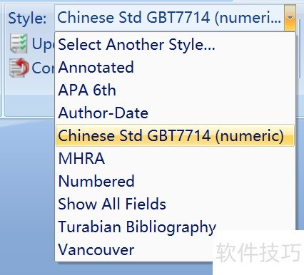1、 打开Word文档,点击顶部EndNote选项卡,从样式下拉菜单中选择Chinese Standard GBT7714。如未显示该选项,可通过更新样式库或手动添加样式文件来解决。