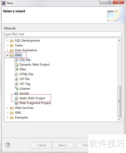 8、 只要找到 web 选项和静态网页项目,即可顺利创建 web 项目。
