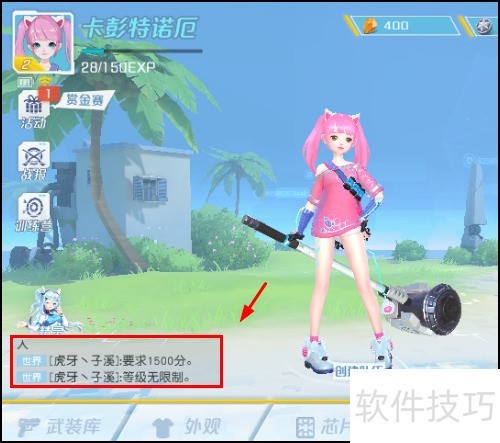 2、 进入游戏后,点击左下角聊天框,所示操作。
