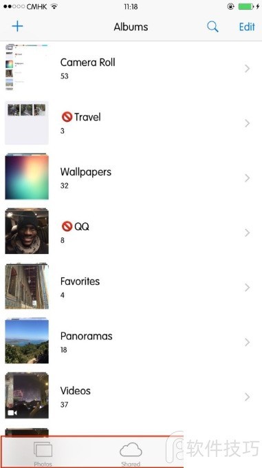 11、 最新功能支持删除系统智能相册,如全景、连拍、视频等,更可喜的是,现在终于能够编辑通过iTunes同步的相册内容了。