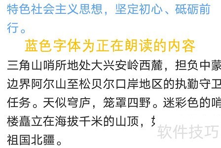 5、 点击图标后将跳转至新页面,页面中以蓝色高亮显示当前正在朗读的内容,便于用户清晰识别和跟随。