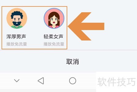 6、 页面底部支持切换人声类型,提供浑厚男声与轻柔女声两种选择,用户可依据个人偏好自由调整。