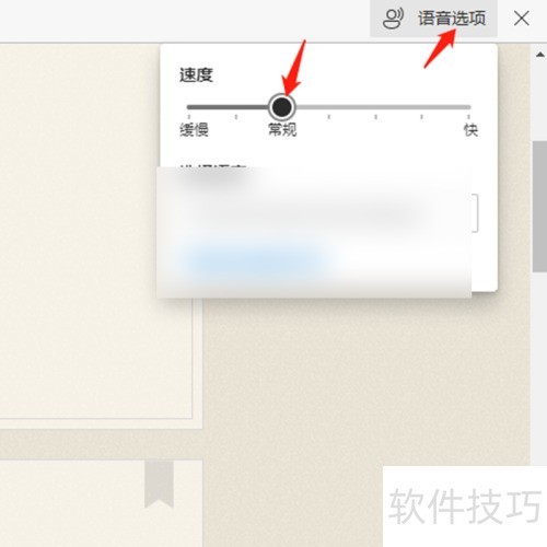 4、 点击语音设置,拖动速度滑块即可调节朗读快慢。