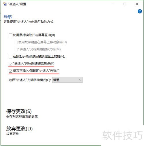 6、 进入导航设置,调整与电脑交互方式,如光标随键盘焦点移动,我们采用默认选项。