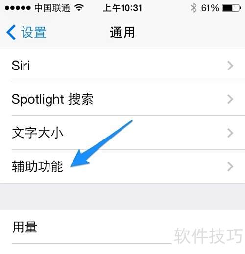 3、 进入通用设置,点击辅助功能选项即可开启。