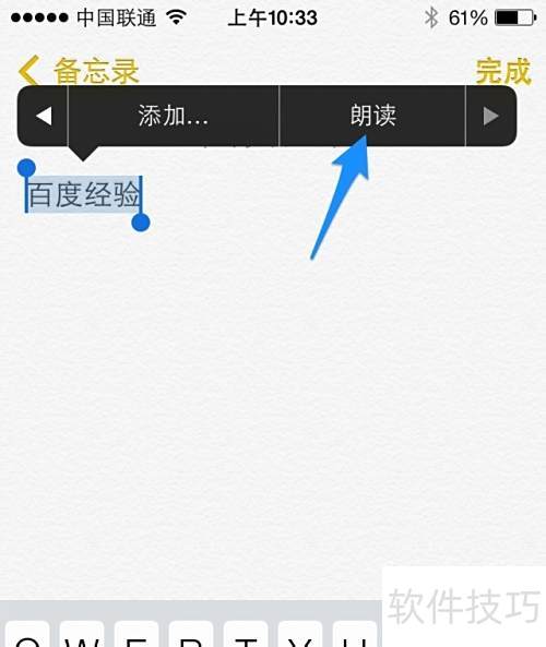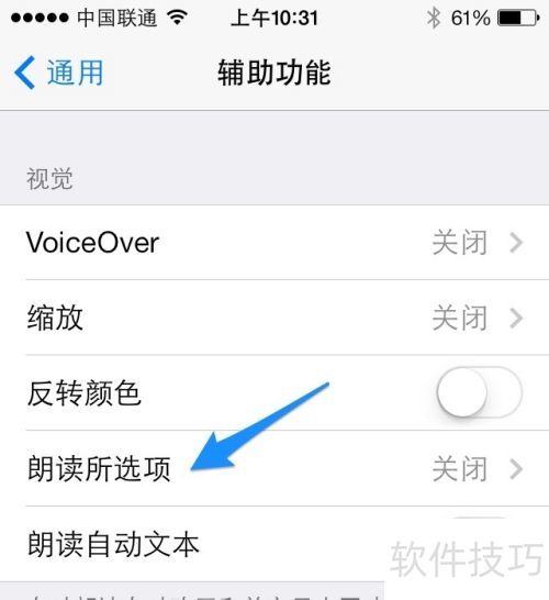 4、 进入辅助功能,开启朗读所选项功能,操作示。