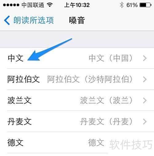 5、 开启朗读功能后,点击嗓音设置项,操作所示。