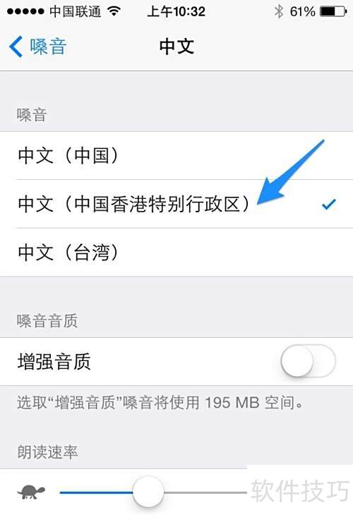7、 接下来会出现香港特别行政区的选项,选中后手机便可使用粤语朗读文本。此外,朗读速度功能可调节语音播放的快慢,用户可根据个人习惯灵活设置,以获得更舒适的听读体验。