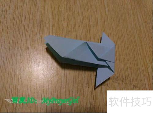 7、 将图形内侧的角向前折叠,再将上方已折的角反向折叠,使该角外露。