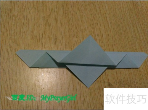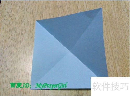 8、 将步骤7中形成的对角线折痕再次对折,从中间位置对齐折叠即可。