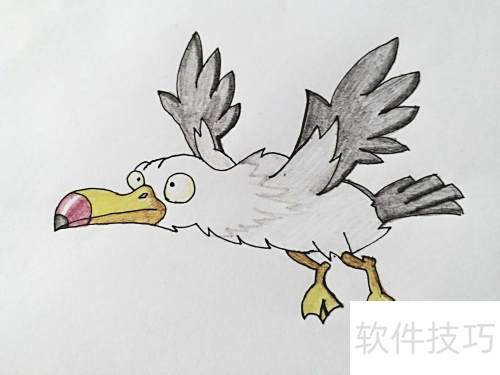 9、 用彩色铅笔给海鸥的嘴和脚上色。