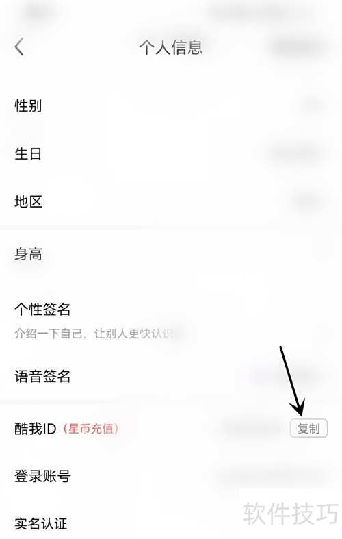 2、 在个人信息中找到酷我ID,点击复制即可。
