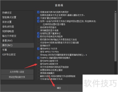 4、 取消勾选索引MPEG视频文件,然后点击确定。