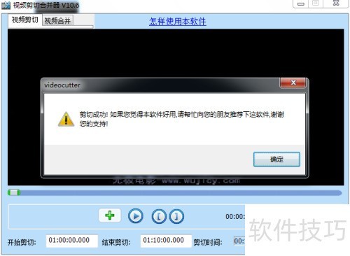 3、 加载待处理视频后,界面下方将显示开始剪切结束剪切和剪切时间三项操作提示。