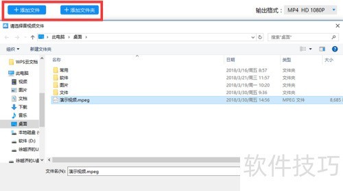 2、 安装完成后,点击添加文件或文件夹,选择MPEG格式文件并打开即可。