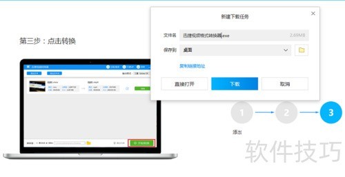 1、 打开浏览器搜索视频格式转换工具,下载后保存至桌面,双击安装文件并运行安装程序即可完成安装。