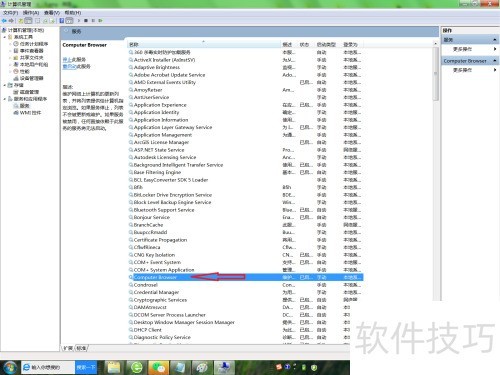4、 在右侧列表中定位到Computer Browser服务项(所示位置)。