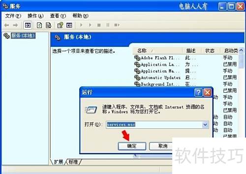 1、 按下开始菜单,选择运行,输入 services.msc 后回车,即可打开服务管理界面。