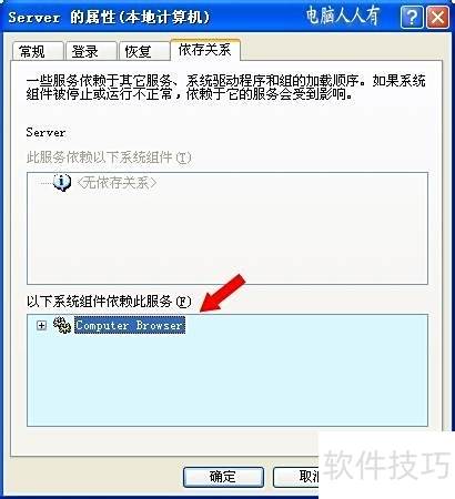 5、 打开服务的依赖关系,可发现系统组件依赖于Computer Browser服务。