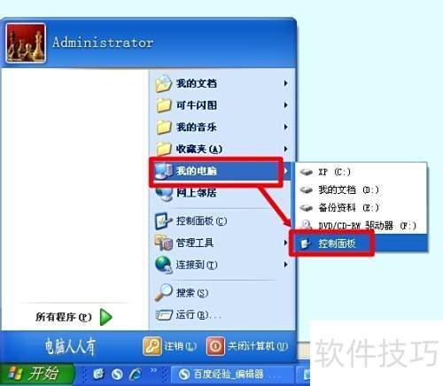 2、 开始→控制面板
