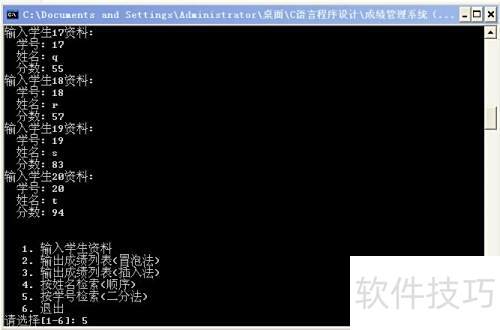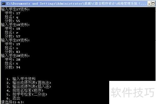 10、 输入1开始登记学生信息,完成20人后,显示选项供选择进入对应功能模块。