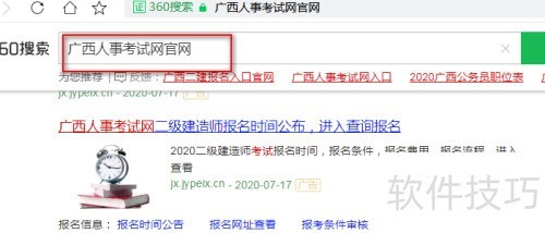 1、 先在百度搜索当地人事考试网官网。