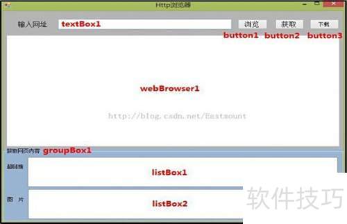 2、 启动Visual Studio 2010,创建一个新的窗体应用程序,将其命名为Web browser。接着,从工具箱中选择Web browser控件并拖拽至窗体界面,具体操作所示。