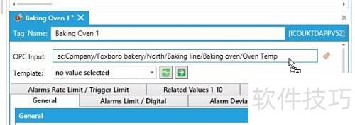 6、 编辑配置时,如AlarmWorX64 Server标签,凡是从Data Browser通过拖放方式输入的元素,均会在对应字段右侧显示标记符号,具体效果3所示。