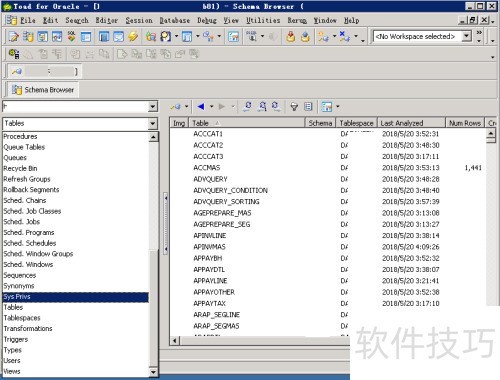 2、 Schema Browser可清晰展示数据中的各类对象,如表空间、表、视图、用户及存储过程等,结构分明,便于浏览与管理。