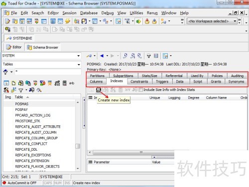8、 在Schema Browser中可统一管理表的索引、关联、权限及触发器等各项设置。