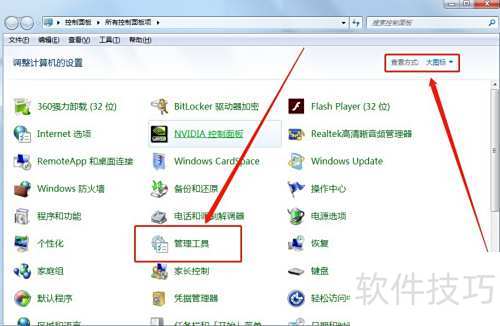 2、 点击管理工具选项,所示。