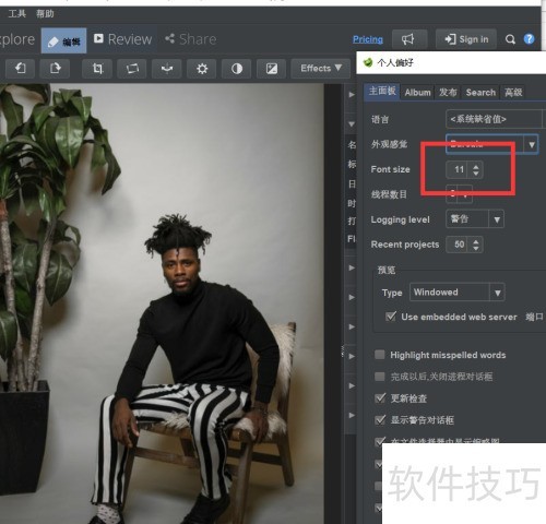 4、 在偏好设置中可调整该软件的字体大小。